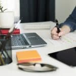Calendar planner agenda schedule concept. Woman working in her office, working, planning.